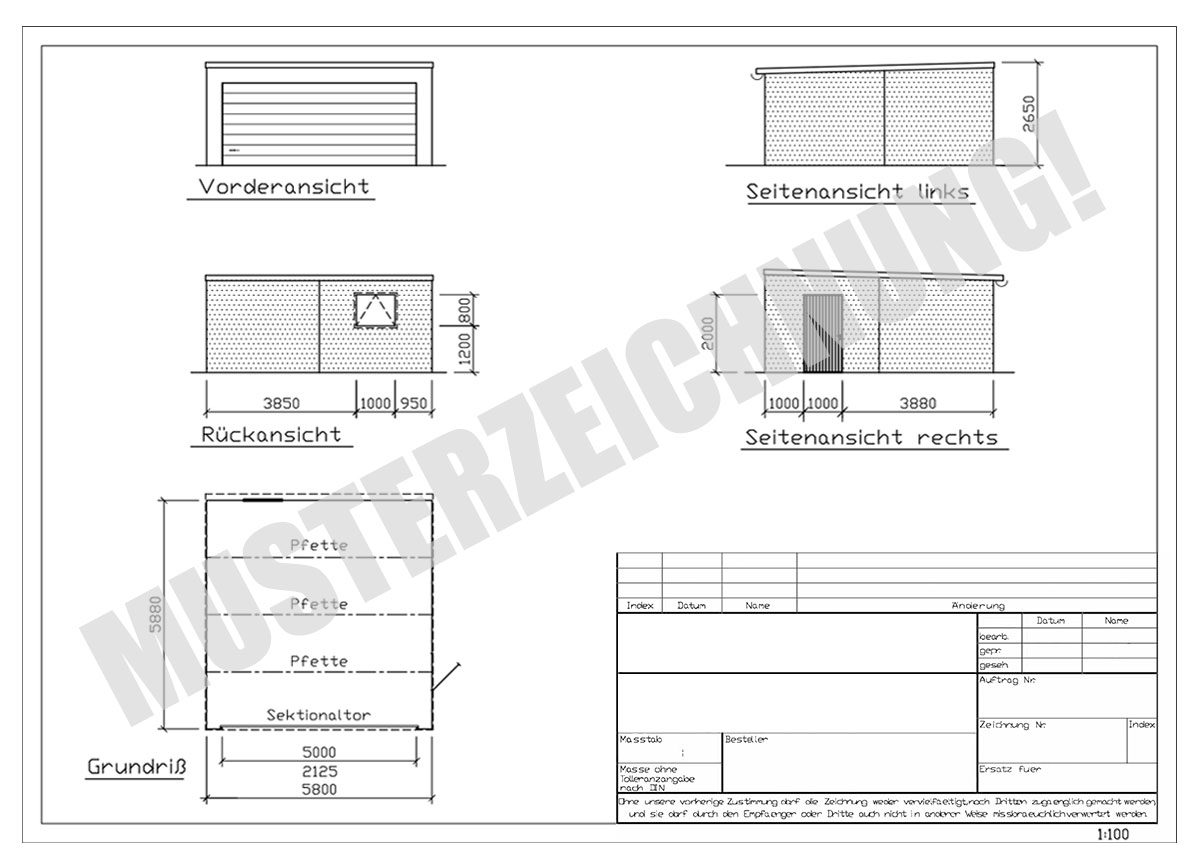 - Lageplan mit eingezeichneter Grundfläche der Garage